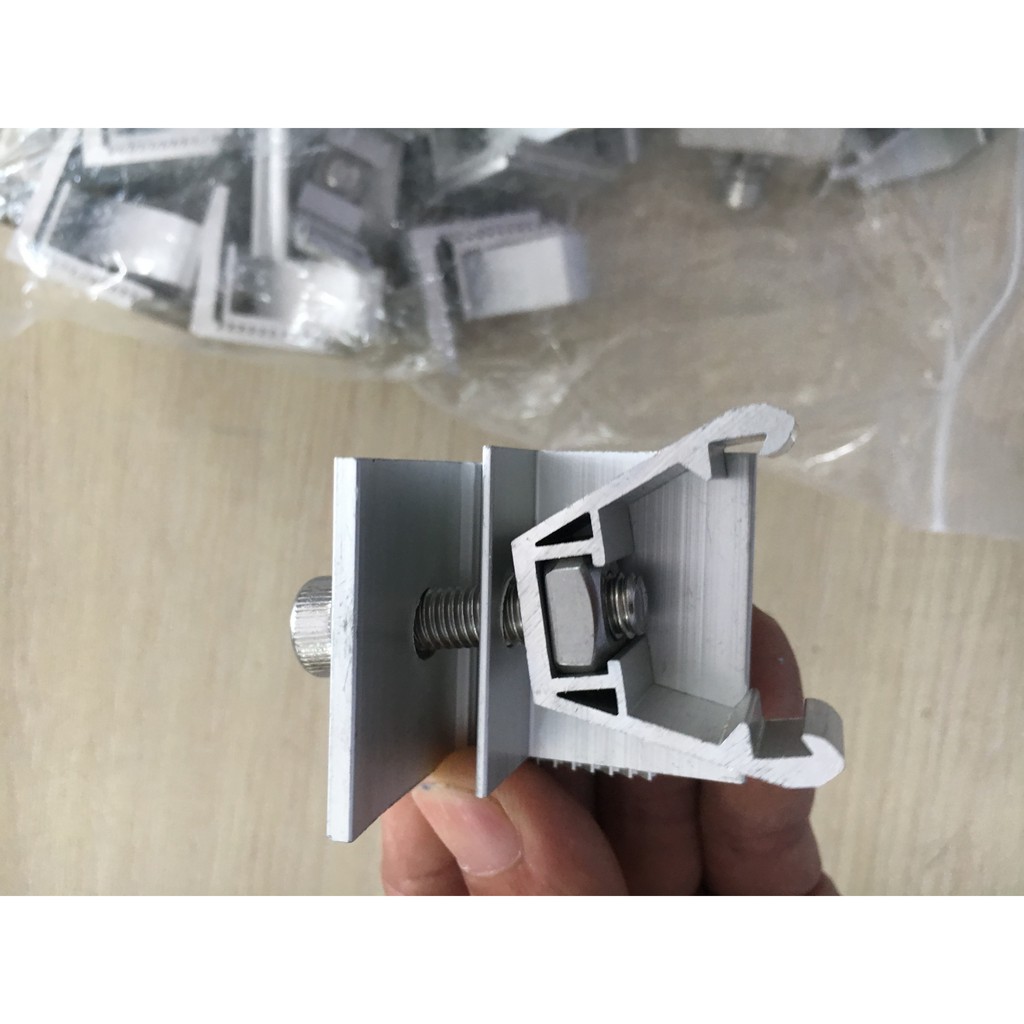 Kẹp giữa tấm pin năng lượng mặt trời được sản xuất bằng nhôm nên nhẹ và chống han dỉ có thể chịu dưới mọi thời tiết khác nhau kẹp giữa có kích thước nhỏ gọn dễ sử dụng nên phù hợp với tất cả mọi tấm pin và điểu kiện sử dụng có thể mang vác lên trên cao khi thi công.