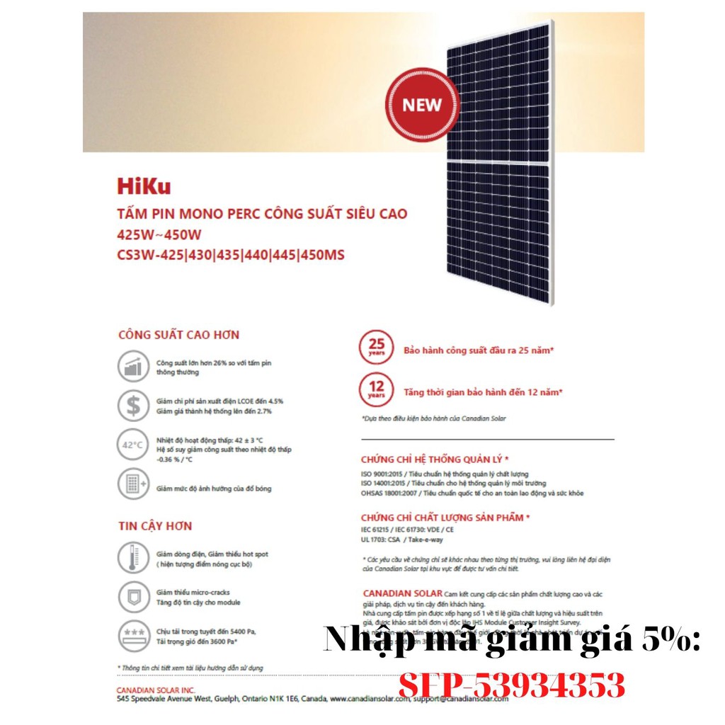 Pin Năng Lượng Mặt Trời Canadian 445w